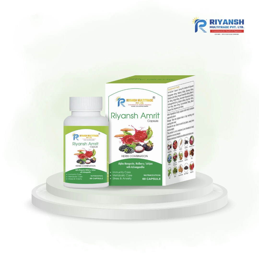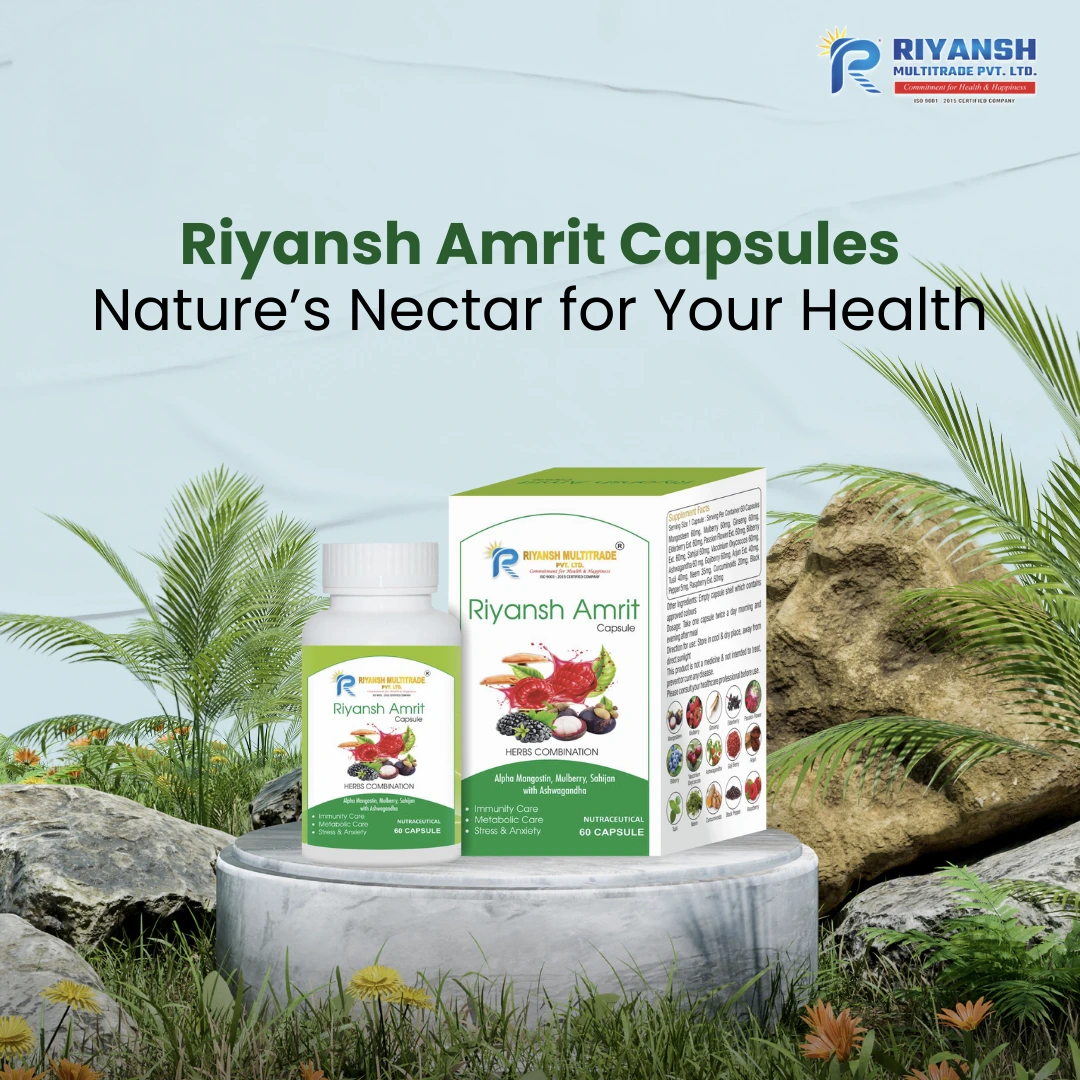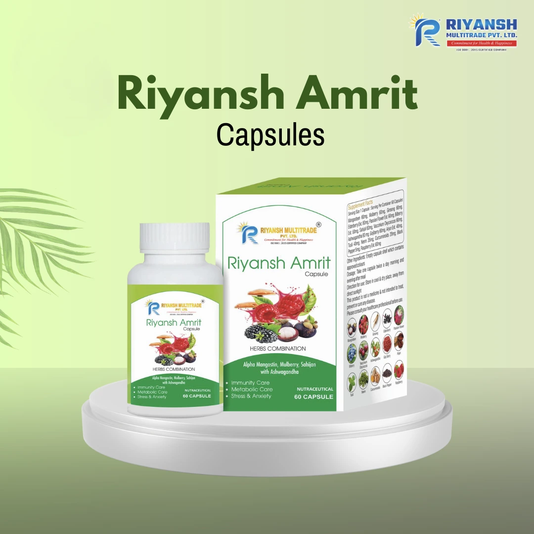 Pendhari Enterprises brings you Riyansh Amrit Capsules, a powerful herbal supplement formulated to support daily vitality and overall wellbeing. Crafted with natural ingredients known for strengthening immunity and promoting internal balance, these capsules help maintain energy, digestion, and wellness throughout the day.